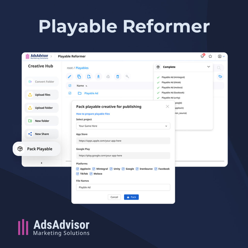 AdsAdvisor’s new tool, Playable Reformer, streamlines the process, cutting production costs by up to 20% and speeding up creative turnaround. It also ensures ads meet all network requirements.