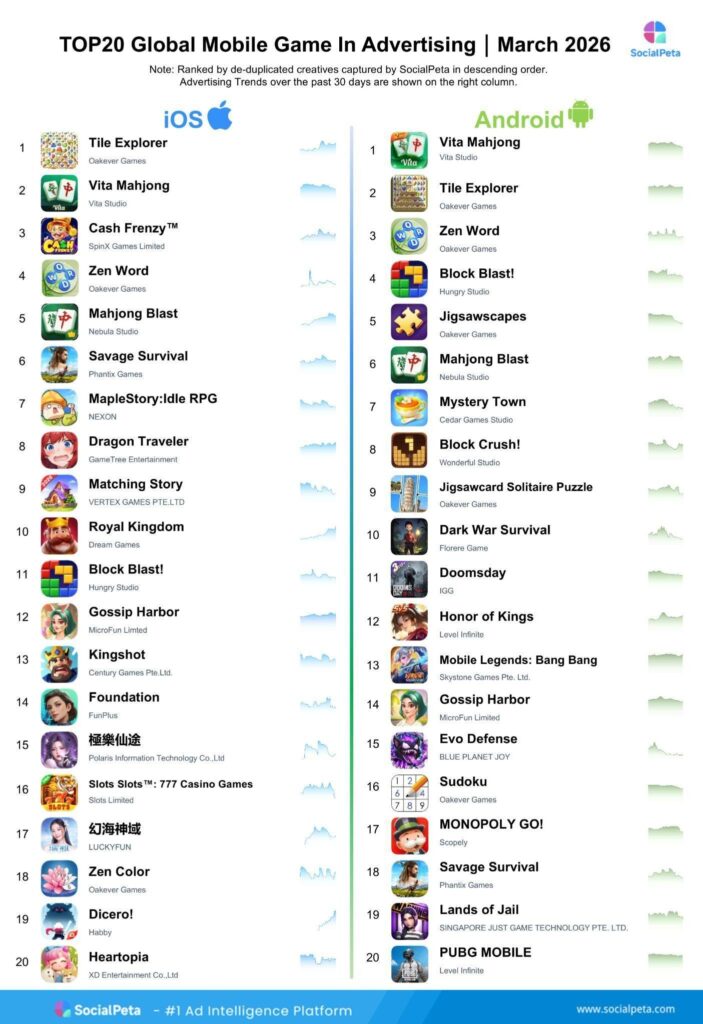 For more mobile game marketing data, advertising insights, and download trend analysis, you can visit SocialPeta’s official website.