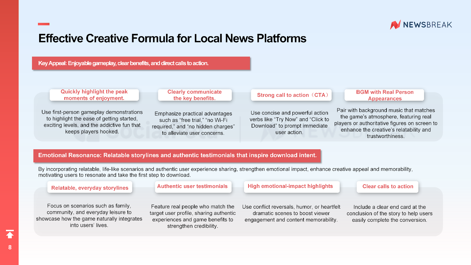 Meanwhile, emotional resonance leaned on relatable storytelling, genuine user reviews, emotionally driven content, and clear instructions to spark user interest. Both strategies helped mobile games effectively connect with audiences via North American news platforms.