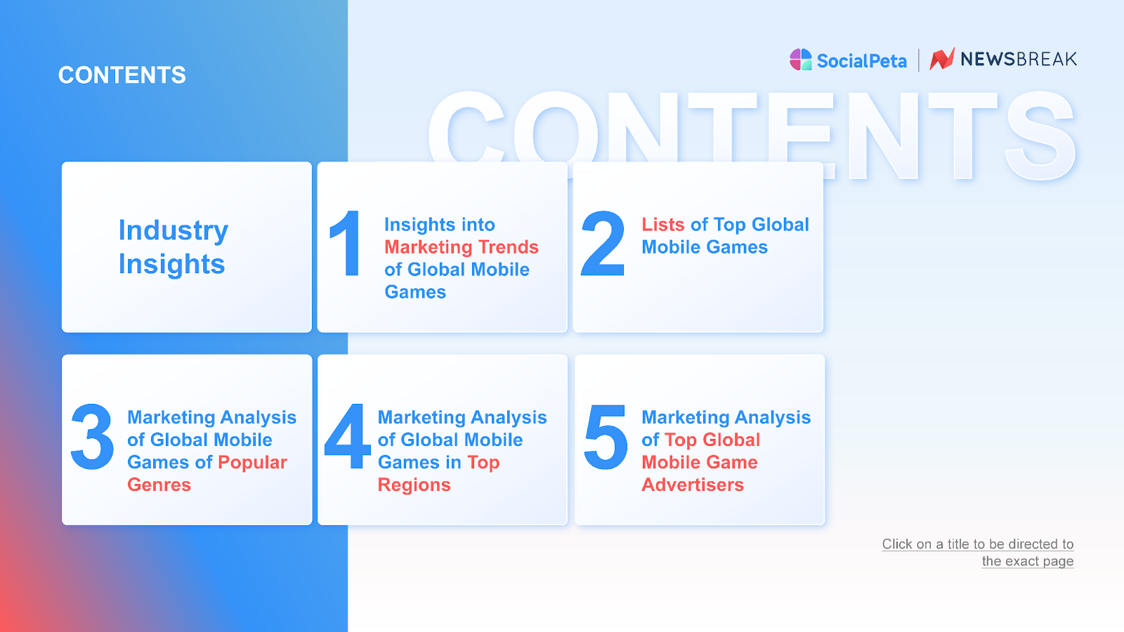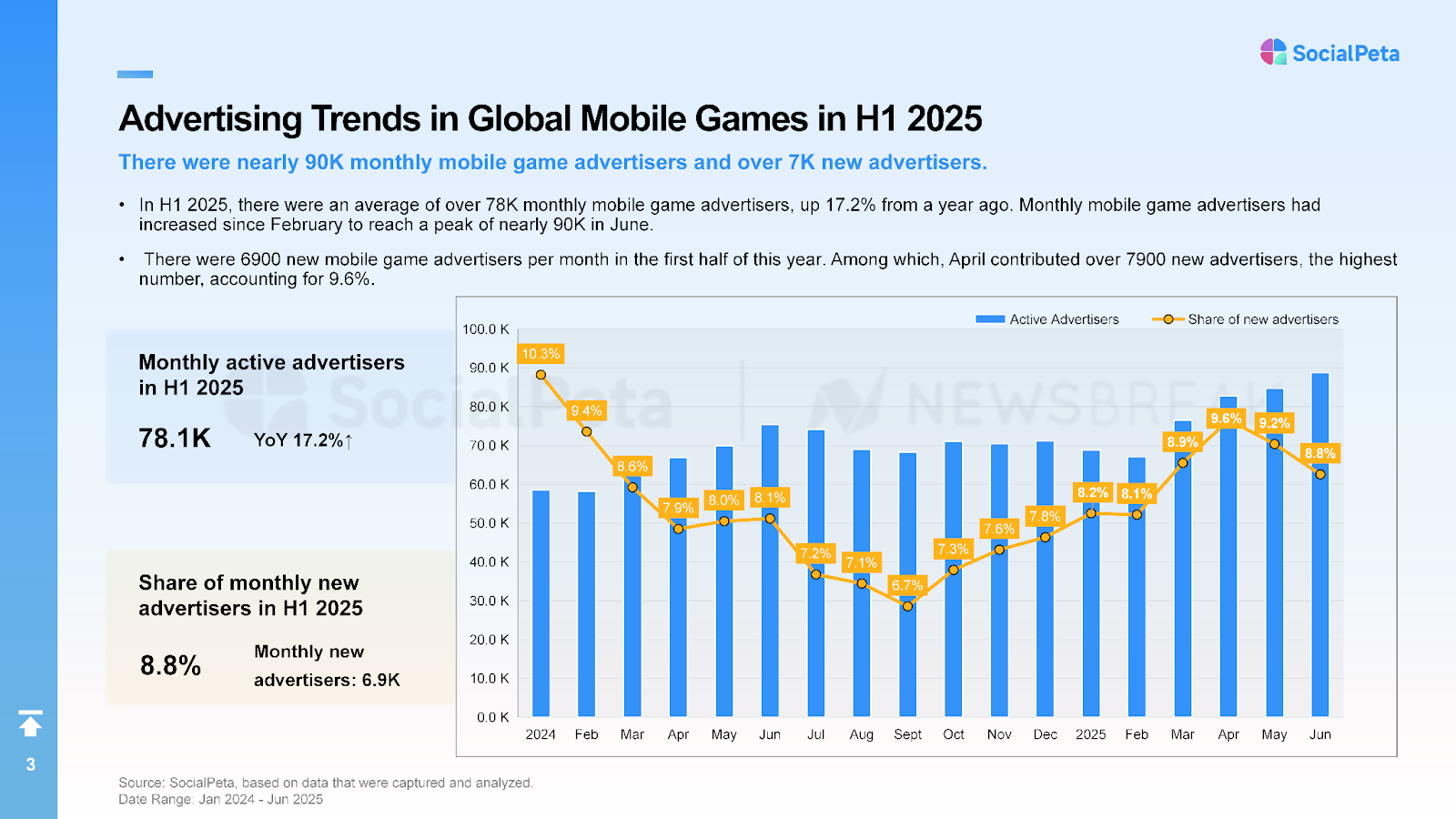 To help industry professionals stay ahead, SocialPeta has partnered with NewsBreak to release the report “Insights into Global Mobile Game Marketing Trends for H1 2025.” This comprehensive report highlights key trends and offers actionable insights to navigate the evolving mobile game landscape.