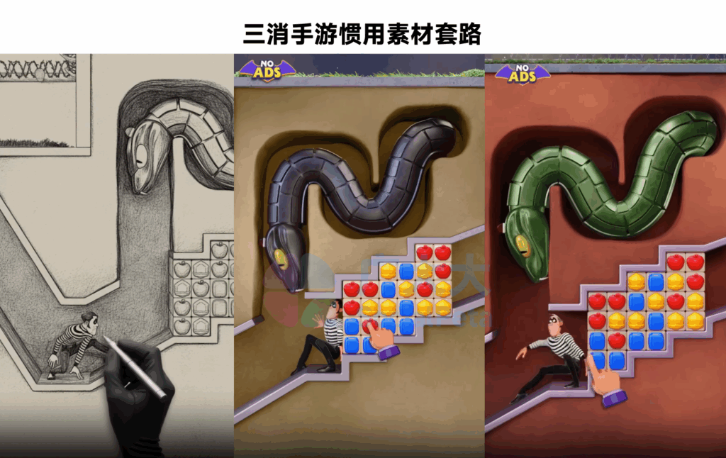 In marketing, Match Villains, like other match-3 games, employs a formula of survival crises, match-3 challenges, and deliberate failure to capture player interest. Its vibrant, exaggerated cartoon style makes animated short videos a favorite among match-3 developers, while its unique protagonist-villain dynamic sets it apart from typical “righteous” characters.