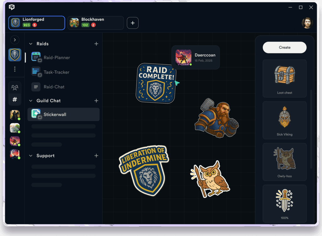At launch, the app will offer first-party apps like Raid Planner for organizing MMO events, Task Tracker for managing community projects and gameplay strategy, and a customizable StickerWall for sharing and creating visual flair.