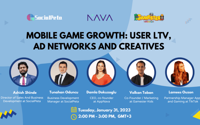 Advertisement creative spy and analysis platform SocialPeta is organizing a webinar to analyze the trends, updates, and predictions for the mobile game industry in 2023. Titled “Mobile game growth: user LTV, ad networks and creatives“, The webinar will be available on January 31st, 2:00 PM GMT+3. Valuable professionals from the industry will discuss their analyses and predictions at this event.
