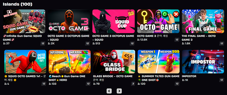 Fortnite, now a fully-fledged UGC ecosystem, saw a similar wave. Players created dozens of Squid Game-themed “islands,” transforming iconic moments into fast-paced challenges. As of now, there are around 100 live maps, many pulling in thousands of players organically.