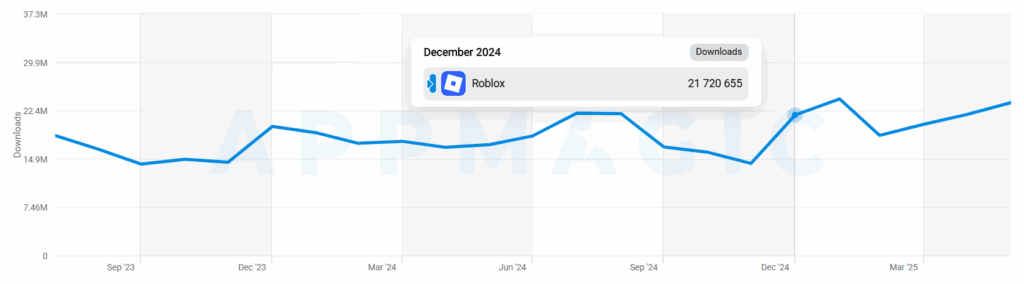 The launch of Season 2 in December 2024 sparked a UGC surge on the platform, driving 21.7 million downloads that month and hitting an all-time peak of 24 million installs in January 2025.