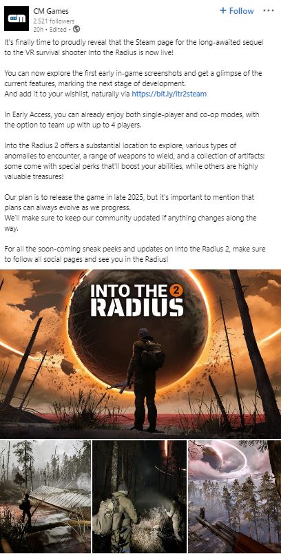 The game’s developer, CM Games, announced the occasion on its official LinkedIn account.