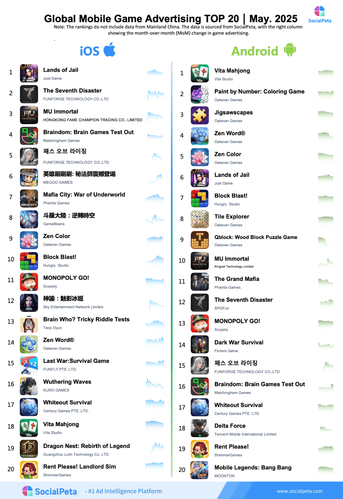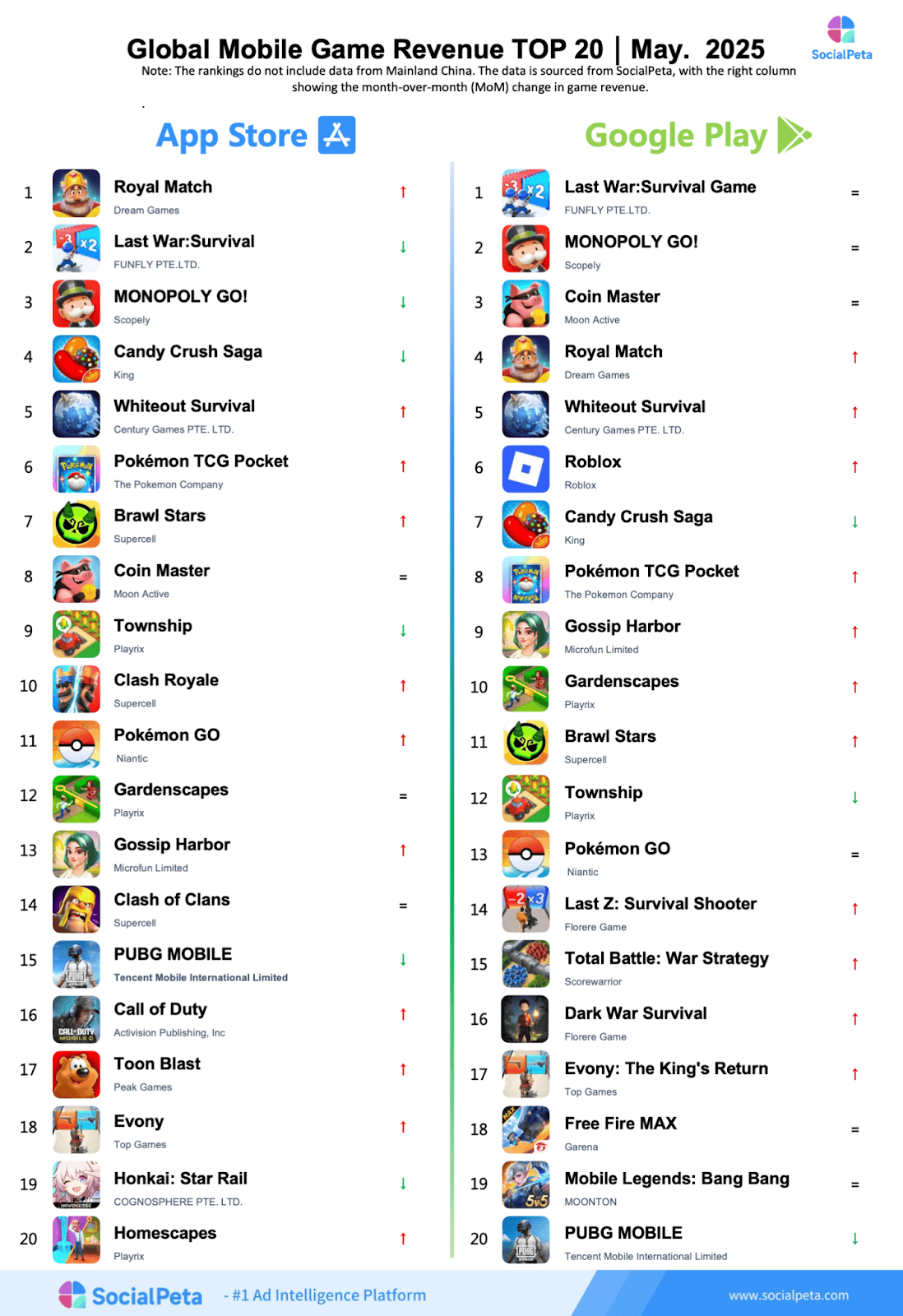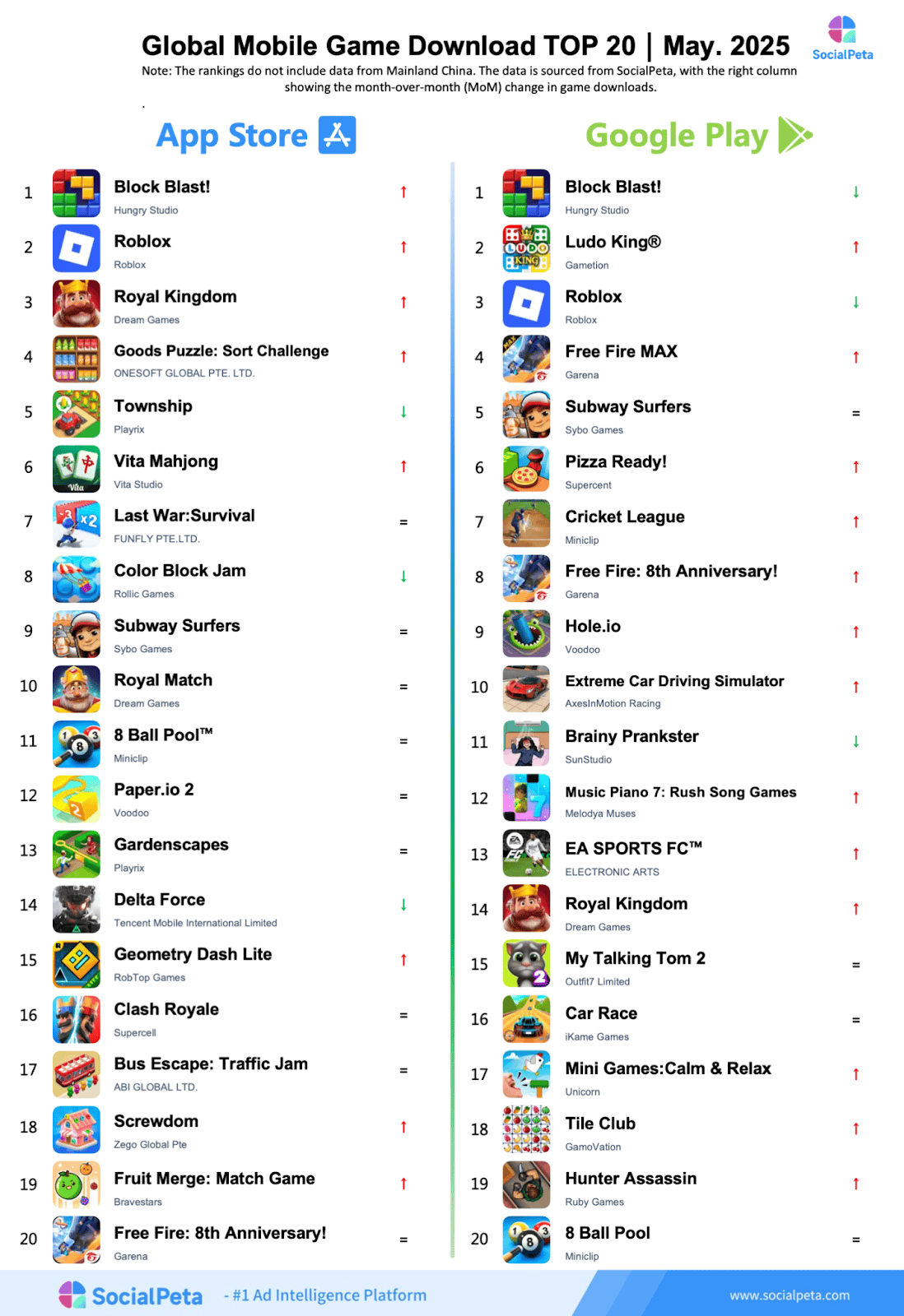 SocialPeta has released its latest report, Global Top Mobile Game in May 2025, hoping to be of assistance to more people in the mobile app industry who are trying to understand the changing trends of the global mobile market.