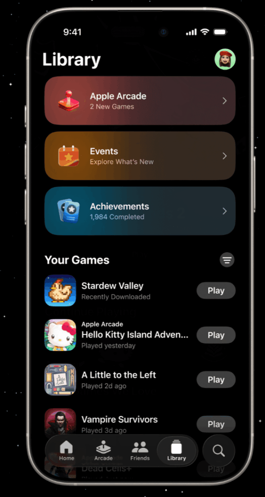 Kullanıcının iPhone, iPad ve Mac cihazlarında App Store üzerinden indirdiği tüm oyunlar tek bir yerde toplanıyor, böylece kolay erişim sağlanıyor.