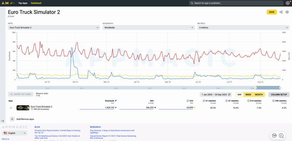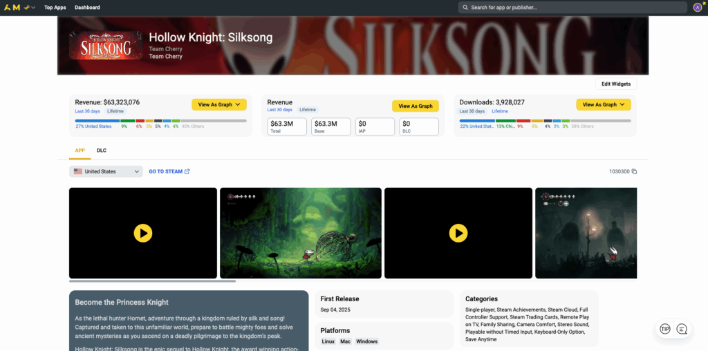 Mobil analizleriyle tanınan uygulama pazar istihbarat platformu AppMagic, Steam Analytics adlı yeni hizmetini duyurarak platformunu hem mobil hem de PC oyun performansını kapsayacak şekilde genişletti. Bu yeni hizmet, her iki platformun verilerini tek bir arayüzde sunuyor.