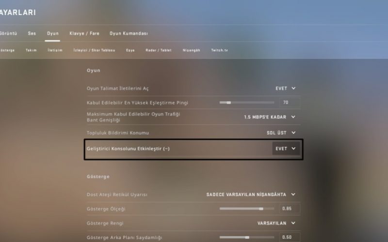 CS: GO konsolunun açılmamasının sebebi ayarlardan geliştirici konsolunun açılmaması olabilir. CS: GO ayarlarınıza giderek “Geliştirici konsolunu etkinleştir” seçeneğini tekrardan kontrol edin. Bu seçenek kapalı olma durumunda hiçbir şekilde CS: GO geliştirici konsolunu açamaz ve hiçbir konsol komutunu aktifleştiremezsiniz.