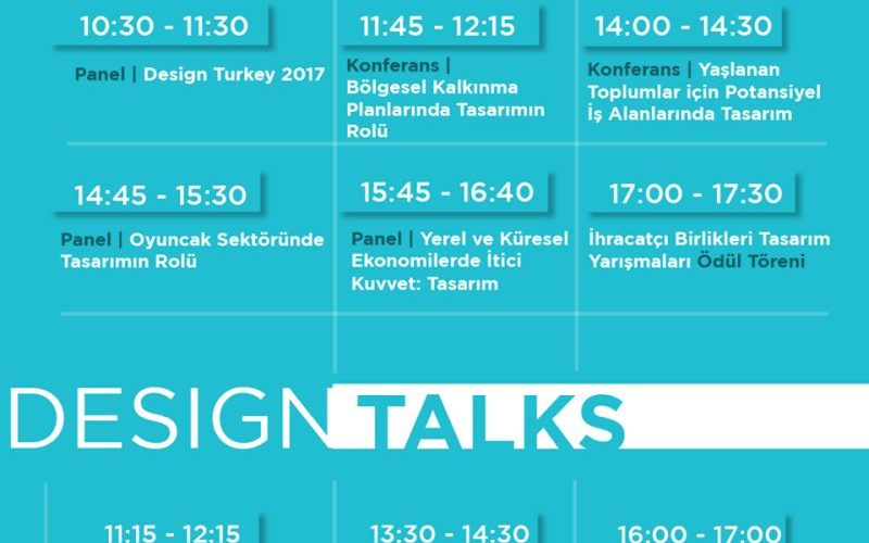Tasarım ile tüm endüstrileri buluşturmak amacı ile yola çıkan Design Week Turkey, ikinci yılında “Tasarımın Potansiyeli” temasını gündeme taşıyor. Tasarımın gücü konusunda farkındalık sağlamak, tasarım kültürü oluşturmak, Türk tasarımcıları dünyaya tanıtmak ve de rekabetçi üstünlük sağlayarak gerek ekonomimize gerekse medeniyetimize sağlanabilecek katkının potansiyelini vurgulamak üzere önemli bir platform olan Design Week Turkey bu yılda oldukça kapsamlı bir program ile Türkiye Cumhuriyeti Ekonomi Bakanlığı ve Türkiye İhracatçılar Meclisi tarafından 8-12 Kasım 2017 tarihleri arasında İstanbul Lütfi Kırdar Uluslararası Kongre ve Sergi Sarayı’nda düzenleniyor.