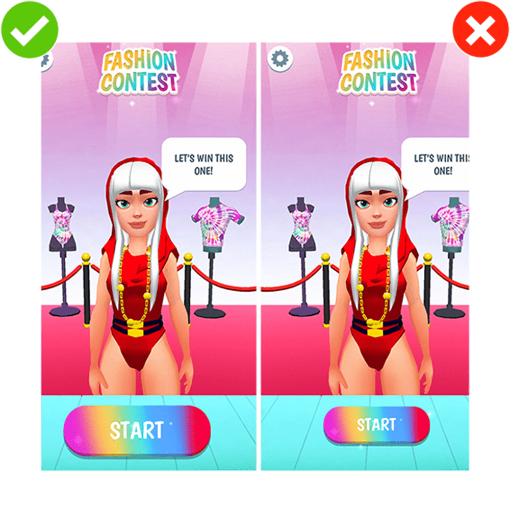 Hemen hemen herkesin alışkan olduğu birtakım buton konumlandırmaları vardır. Örneğin, bir reklamı veya formu gördüğümüz zaman, onun CTA butonunu en aşağıda ararız. Bir CTA butonunun oyun içerisinde konumlandırılması, diğer görsel elementlerin konumuna epey bağlıdır ve bu sebeple dikkat edilmesi gereken önemli bir konudur. CTA butonu, oyunun en değerli öğesi olduğundan, onu olabildiğince fark edilebilir bir alana koymalısınız. Buna ek olarak, CTA butonu komşu butonlarından biraz uzakta bulunmalı, böylece onun farklı ve daha merak uyandırıcı olduğunu vurgularsınız.