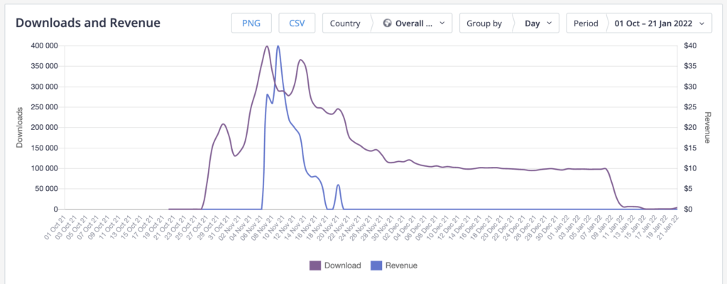 Squid Game ile ilgili en popüler uygulamaların her biri 3-6 milyon indirildi. İndirmelerin ve gelirlerin zirvesi, herkesin diziyi izlemeyi bitirdiği Ekim sonu – Kasım başı döneminde gerçekleşti. Ancak, hızlı yükselişi aynı ani durgunluk izledi: şimdi, dizinin yayınlanmasından dört ay sonra, neredeyse hiç kimse bunu hatırlamıyor.