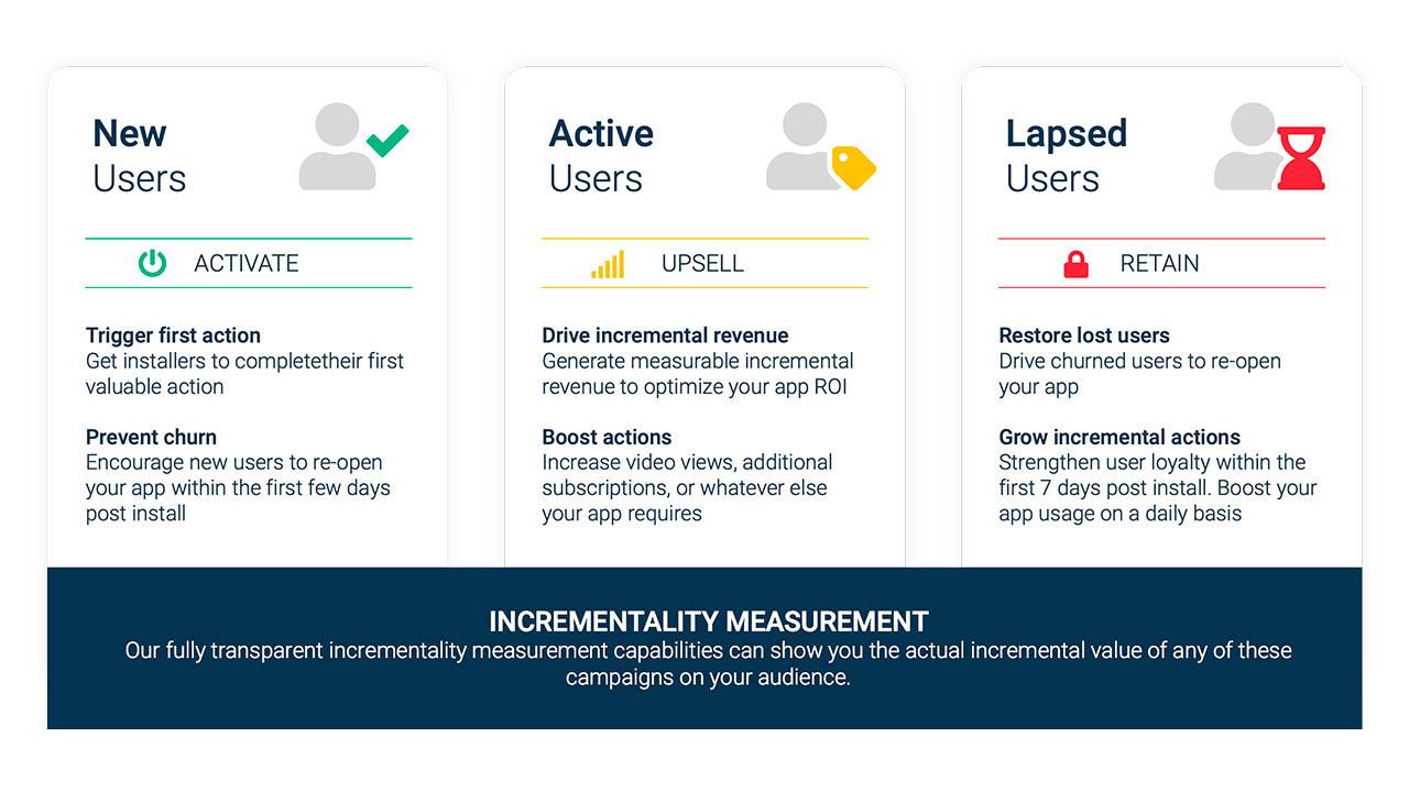 By creating highly targeted audiences based on a user’s place in the funnel, the abandonment rate and the impact of mobile app retargeting on conversion rates become easy to analyze. With this rich array of data, marketers have a much clearer idea of how their users interact in-app and where potential drop-off points may be. From there, they can focus on the best-performing campaigns over time.