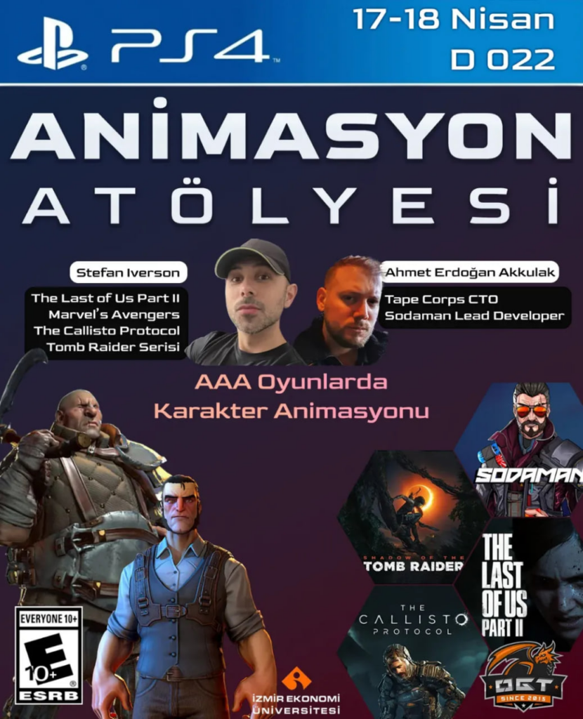 The Last of Us Part II, Tomb Raider serisi, Marvel’s Avengers ve Callisto Protocol gibi oyunlara imzasını atmış uzman animatör Stefan Iverson ve Tape Corps CTO’su ve Sodaman Lead Developer’ı Ahmet Erdoğan Akkulak, İzmir Ekonomi Üniversitesi’nin konuğu oluyor.