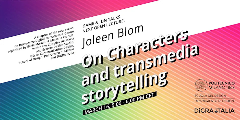 Kapsayıcı ve kapsamlı bir bakış açısı benimseyen konuşma, oyun karakterlerinin rolünün ve oyuncularla etkileşiminin kökenlerini, sınırlarını ve evrimlerini keşfetmek için Medya Çalışmaları ve Oyun Çalışmalarına uzanıyor. Anlatı sürekliliği, karakter çoğalması ve anlatı tüketimi gibi biçimsel unsurlar ele alınıyor.