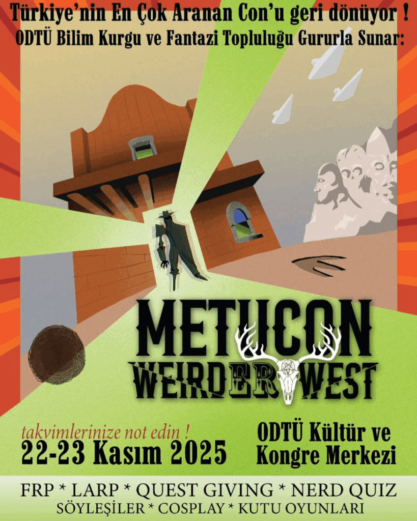 METUCON’da, FRP/TTRPG’ler, LARP’lar, kutu oyunları, cosplay, quest giving, nerd quiz, panayır alanı, turnuvalar, birçok söyleşi, sayısız sürpriz etkinlik ve ödül sizi bekliyor.