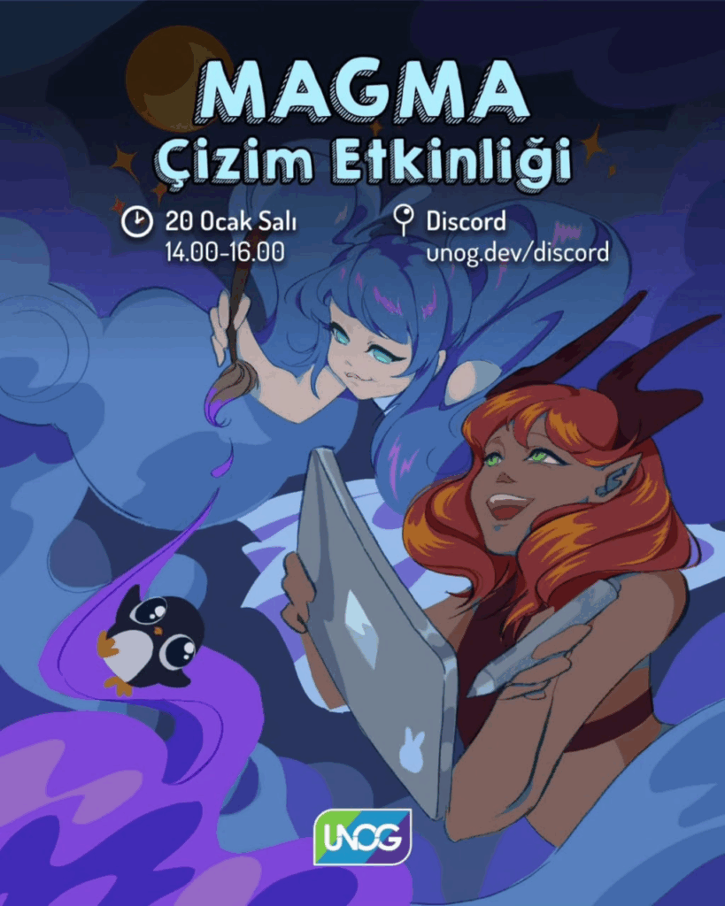 Magma programı sayesinde ortak bir dijital tuval üzerinde, temaya uygun çizim yaparken aynı zamanda sohbet edebileceğiniz bir ÜNOG etkinliğidir.
