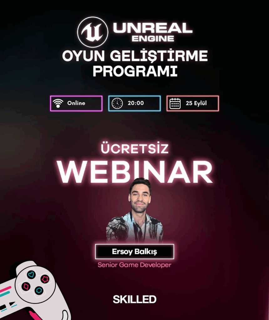 SkilledHub tarafından düzenlenecek, toplam 3 ay boyunca 100 saat sürecek olan Unreal Engine Oyun Geliştirme Programı hakkındaki sorularınızı sorup eğitmeni tanıyabileceğiniz bir etkinlik.