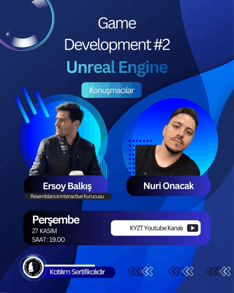 Unreal Engine temelleri, çalışma mantığı ve geliştiricilerin kullandığı pratik yöntemlerin bahsedildiği sertifikalı bir etkinlik.