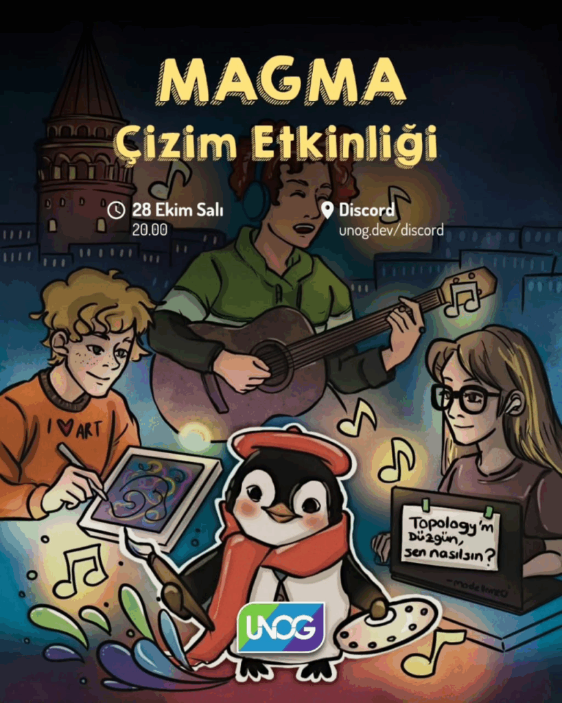 Magma programı sayesinde, ortak bir canvas üzerinde, temaya uygun çizim yaparken aynı zamanda sohbet edeceğiniz ÜNOG etkinliği.