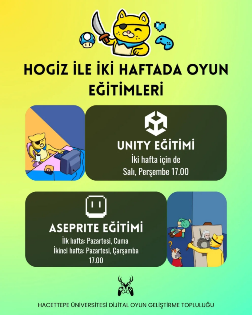 İki hafta sürecek Unity ve Aseprite eğitimleri ile hem oyun kodlayıp hem piksel art dünyasının derinliklerine dalacaksınız.