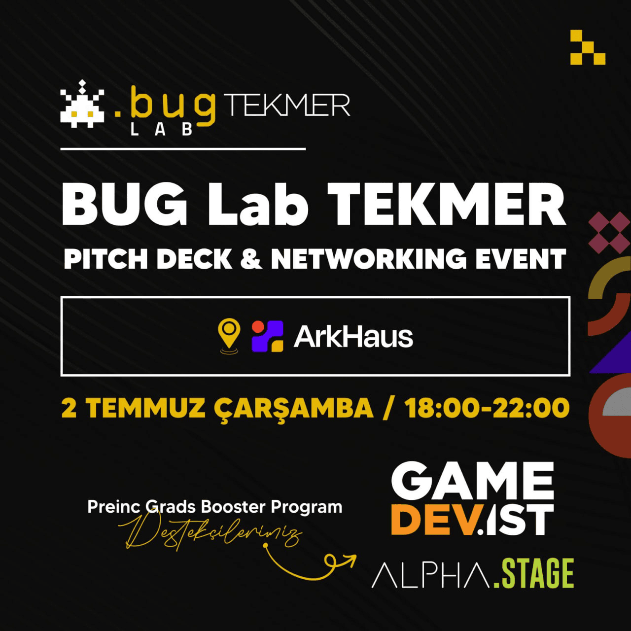 BUG Lab Tekmer Ön Kuluçka merkezi mezunlarının sunum yapacağı etkinlikte hem sunumları izlemek hem de sektördeki kişiler ile networking yapmak için harika bir etkinlik.