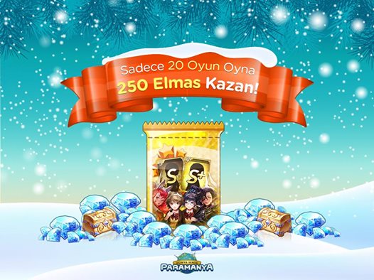 Yılbaşında oynamanız için önerdiğimiz oyunlar arasında yer alan ve Türkiye’nin önde gelen mobil oyunları arasında kendine yer bulan Paramanya‘da bugünün ve yarının planı belli oldu. Oyunun resmi Facebook sayfası üzeriden paylaşılan bir gönderiye göre bugün ve yarına özel birtakım hediyeler bulunuyor. Bugün ve yarın oyuna giriş yaparak 20 oyun oynayan oyuncular, 250 elmas ve S-S+ Popüler Kart Paketi kazanacaklar.