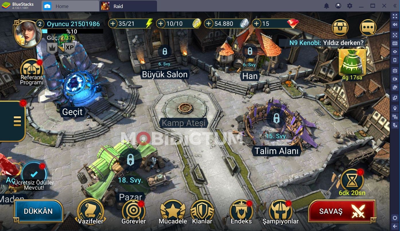 Gel gelelim oyunun asıl noktalarından birine. Oyun aslında bize birden fazla savaş için alan sunuyor. Bunlar biri olan sefer haritasına girdiğimizde oyunun bu ayrı savaş alanlarında bile zengin bir içeriğe sahip olduğunu görüyoruz. Sefer haritasındaki her bir bölüm aslında kendi içerisinde bile aşamalara bölünüyor ve her bir aşamanın zorluk derecesi farklı oluyor. İlk başladığımız sefer haritasında karşımıza çıkan Kaerok Kalesi toplamda 7 aşamadan oluşuyor. Sadece ilk haritada toplamda 12 kalenin olduğunu düşünürsek oyun bir fazlasıyla içerik sunuyor gibi gözüküyor. Sefer haritası dahil olmak üzere toplamda 5 farklı savaş seçeneği imkanımız bulunuyor. Bunlardan biri ise sadece klan üyelerine özel olarak karşımıza çıkıyor. Bir klana sahip olmanın ayrıcalığı bu noktada işimize yarabiliyor. Oyunun Türkçe olduğunu ve sohbette yer alan kişilerin Türk olduğunu düşündüğümüzde bir klana girmek çok da zor olmasa gerek. Ayrıca diğer oyunculara üstünlük sağlamak için BlueStacks 4 bu noktada işimize yarabilir.