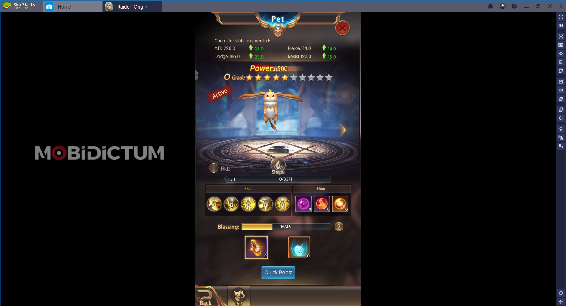 Pet’lerin de kendi yetenekleri mevcut. Her evcil hayvan 1. Seviye olarak başlıyor. Ayrıca diğer oyunlardan biraz daha farklı olarak Raider: Origin’de pet’ler eşya toplamanın yanı sıra, canavarlara saldırıyorlar. Oyunda evcil hayvan olarak at da elde ediyorsunuz. Atlar da pet’ler gibi geliştirilebiliyor. Oyun boyunca yapmanız gerekenler size gösteriliyor. Oyuna yeni başlayanlar için yönlendirmeleri takip etmek hem iyi bir başlangıç yapma hem de oyuna alışma süreci için iyi olacak gibi duruyor. Oyun böylesine detaylara hakimken telefonunuzun bataryasını yorabilir. Bu bağlamda BlueStacks bilgisayardan oynayabilirsiniz.