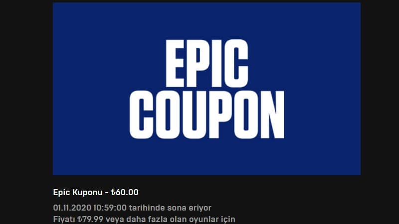 Epic üzerinden indirenlere 60₺ değerinde oyun kuponu