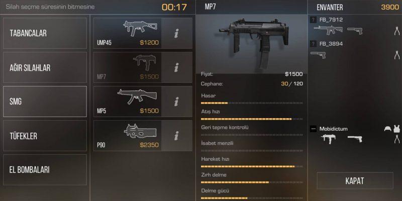 MP7’yi 1500 dolarlık bir ücret karşılığında her iki takımın mağazasından erişebilirsiniz. Atış hızı çok yüksek olduğundan yakın mesafede çok etkili bir silah. Uzak mesafeden ise hasarı oldukça az. Tek şarjör içerisinde 30 mermi bulundurduğundan kontrolü oldukça zor bir silah. UMP45 ve MP7 silahı arasında kaldıysanız daha hızlı atış yapmak istiyorsanız kesinlikle MP7’yi seçmelisiniz. MP7 silahıyla aldığınız her öldürme karşılığında 400 dolar kazanacaksınız.