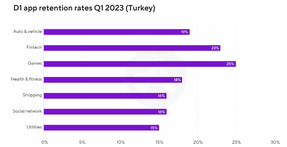 Daha fazla insan sağlıklı bir yaşam tarzının faydalarının farkına vardıkça, sağlık ve fitness uygulamaları da Türkiye’de popülerlik kazanıyor. Sürekli artan sayıda seçeneğe sahip olan bu uygulamalar, kişiselleştirilmiş özellikler sunarak kullanışlı ve kullanımı kolay hale getiriyor. Ancak, 2023 yılına kadar 511,6 milyon ABD doları gelir öngörülmesine rağmen, bu uygulamalar için yükleme ve oturum sayısı 2021’den 2022’ye sırasıyla %28 ve %25 oranında azaldı. Bununla mücadele etmek için mobil pazarlamacılar içeriğin yerelleştirildiğinden emin olmalı ve indirmeleri ve kullanıcı etkileşimini artırmak için uygulama mağazası optimizasyonundan yararlanmalıdır. Oyunlaştırma zorlukları da kullanıcıların ilgisini canlı tutmaya yardımcı olabilir.